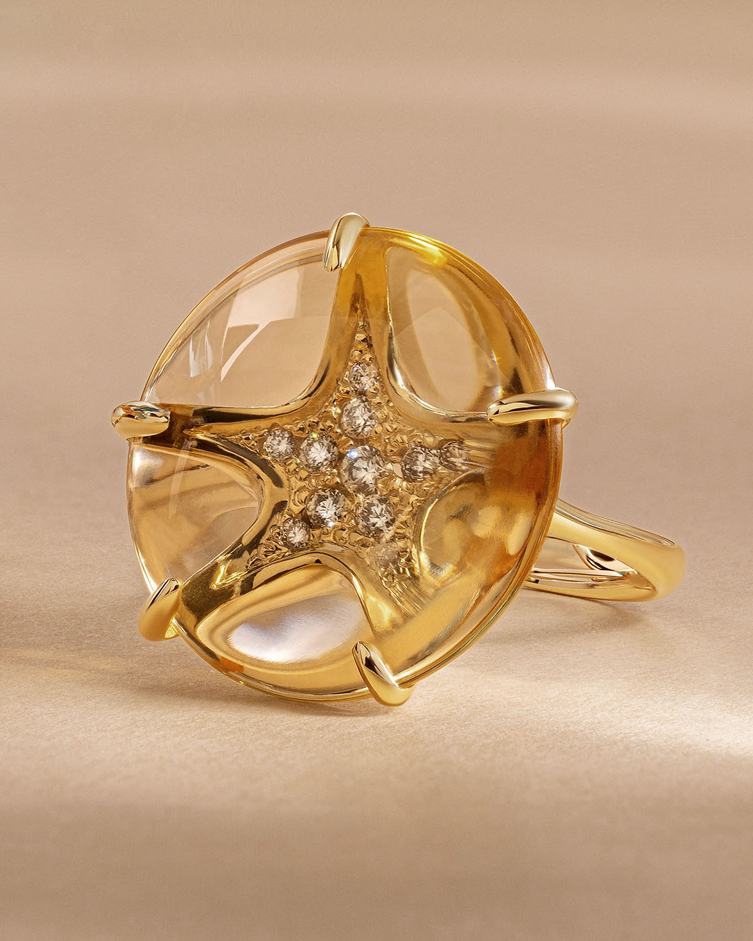 Zlatna kolekcija obuhvaća prsten, ogrlicu i naušnice sa stiliziranom morskom zvijezdom. Zvijezda pridržava topaz u obliku leće u nijansama mora ili citrin u nijansama sunca, a ispod kamena svjetlucaju sitni briljanti. Prirodan kamen vizualno povećava te briljante, zbog čega se doima da promatramo blago na morskom dnu.